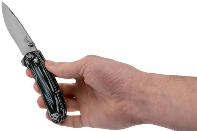 The Benchmade North Fork Folder 15031-1 is a relatively compact pocket knife, designed for hunting purposes. The G10 handle offers a lot of grip thanks to the grooves. You even have enough grip with wet hands.