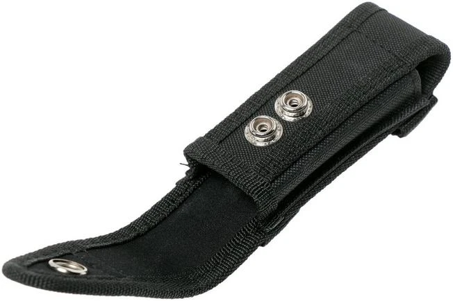 The Böker Cordura sheath Large is a practical belt sheath that enables you to carry your pocket knife on your belt. It is made from solid nylon and, as such, very robust. You can close the flap in two different ways. This sheath is namely enhanced with two press studs that are placed above each other. With the upper press stud the sheath has room for a 12 cm knife when closed. Will you be using the bottom press stud? If so the sheath only has room for a closed knife of up to 11 cm.