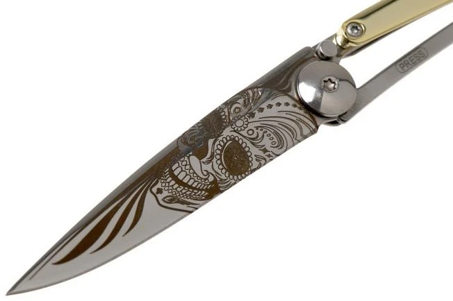 Deejo Tattoo Gold 27g, Yellow Gold Gilded, Latino Skull DJ9AM000021 Pocket Knife