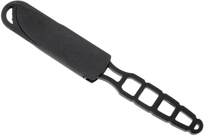 This KA-BAR neck knife is a tough and practical no-nonsense knife. The blade is made from stainless 5Cr15 steel. This type of steel is easy to sharpen. Thanks to the stunning ‘skeletonized’ handle this knife weighs next to nothing. Combined with its compact size this knife can easily be carried in the included hard plastic sheath. Once secured this knife will not leave its sheath.