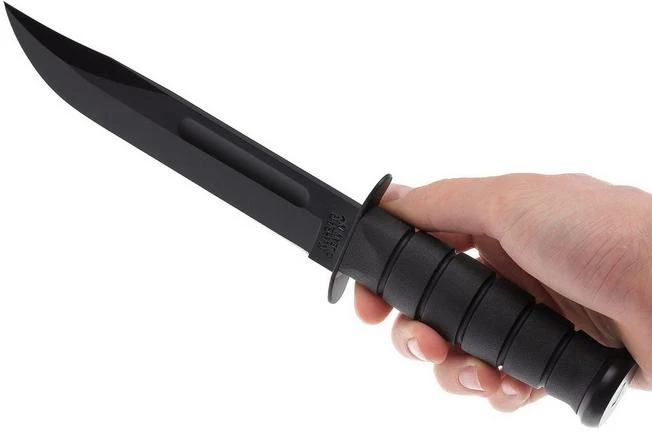 The KA-BAR 1213 USMC is a legendary fixed knife. In 1942 this knife was used by the United States Marine Corps as a standard fighting knife for the marines. Ever since this knife is a part of the standard equipment of many soldiers. The knife is big and feels very strong. The handle is enhanced with a knife guard to make sure you will never end up on the razor-sharp edge during heavy-duty use. The blade is made from 1095-carbon steel. This steel, however, is not corrosion-resistant. Fortunately the blade is enhanced with a black coating to make sure maintenance is a lot easier.