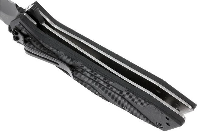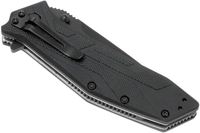 The Kershaw Brawler is a practical pocket knife with a stunning tanto-shaped blade. The blade is made from 8Cr13MoV and opens quickly with the help of the assisted opening. You can easily open this pocket knife with the help of both the flipper and thumb stud. The handle is made from FRN (glass-fibre reinforced nylon) and feels great in hand. For a knife with a closed length of 10.5 cm it does nicely fill your hand. You can carry the knife with you with the pocket clip that can be attached in four different ways. As such it is great for left and right-handed use.