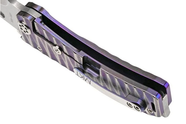 The Medford Marauder-H is a cool and robust pocket knife with its own look and feel. The Marauder-H is the largest knife from the Marauder collection. A beast of a knife. Striking is the thickness of the blade in combination with the thickness of the handle. They both have the same thickness. As such the Marauder-H looks incredibly decent. Unique about this Marauder-H is that the handle is enhanced with a lightning (faceted) show side with a violet-coloured anodized finish.