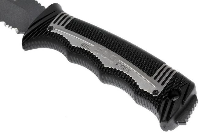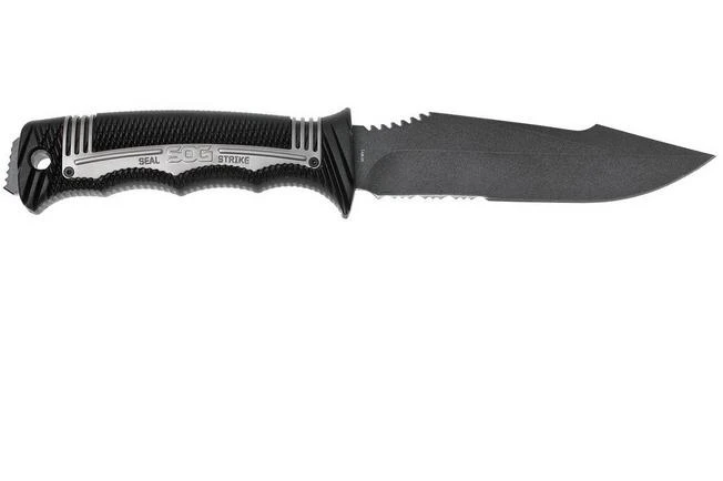 The SOG Seal Strike is a solid and tough knife, characteristic for SOG. SOG has a reputation to keep when it comes to these combat knives. The SOG Seal Strike totally lives up to the expectations! Glass reinforced nylon handle with stainless steel feels really good inside your hand. The blade is full-tang, which means that the steel runs through the entire handle. The blade is made of AUS8 steel with a partly serrated edge. Ideal for the cutting rope and the like. The upright bulge on the back of the blade offers just that little extra grip when using the knife with two hands for precision work.