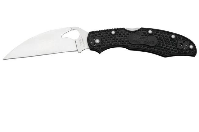 The Spyderco Byrd Cara Cara 2 Wharncliffe is a handy pocket knife for everyday use. Instead of the classic blade shape, this blade is a Wharncliffe. This is a variant of the sheepsfoot, but with a straight edge. Perfect for opening boxes.