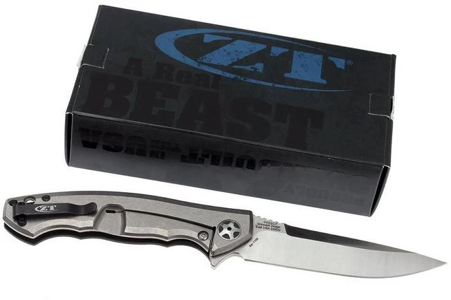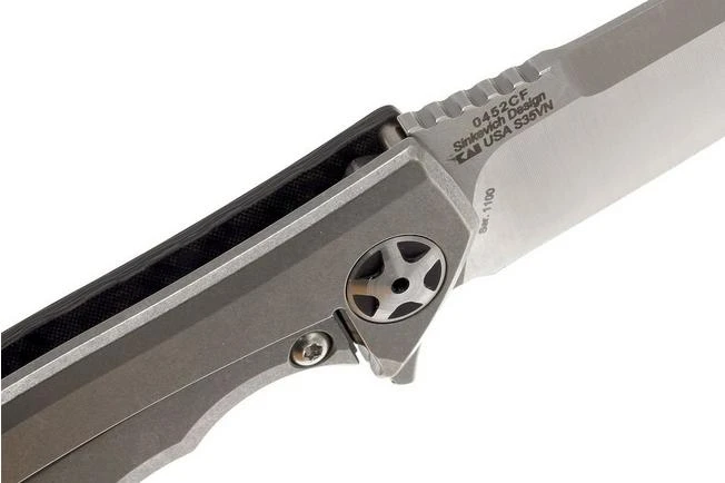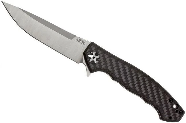 The Zero Tolerance 452CF is a very beautiful pocket knife with a decent size. With a blade length of 10.4 cm and a total length of 23.4 cm this is a knife which people that have big hands will enjoy. The knife is designed by custom knife maker Dmitry Sinkevich. Initially he designed the limited edition 454 for Zero Tolerance. A very popular model, but was soon discontinued. This 452CF has the same size as the 454, but the choice of material for the handle and blade finish are different.